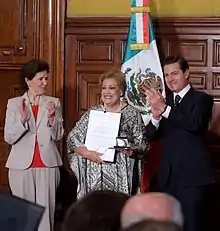 Mercedes De la Garza reçoit un prix du président Enrique Peña Nieto.