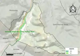 L'occupation des sols de la commune, telle qu'elle ressort de la base de données européenne d’occupation biophysique des sols Corine Land Cover (CLC), est marquée par l'importance des forêts et milieux semi-naturels (87 % en 2018), en augmentation par rapport à 1990 (80 %). La répartition détaillée en 2018 est la suivante : forêts (50,5 %), milieux à végétation arbustive et/ou herbacée (36,5 %), zones urbanisées (7,6 %), zones agricoles hétérogènes (2,8 %), eaux continentales[Note 8] (2,6 %)[37]. L'évolution de l’occupation des sols de la commune et de ses infrastructures peut être observée sur les différentes représentations cartographiques du territoire : la carte de Cassini (XVIIIe siècle), la carte d'état-major (1820-1866) et les cartes ou photos aériennes de l'IGN pour la période actuelle (1950 à aujourd'hui)[Carte 1].