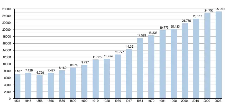 - Source : DGS - Remarque: 1831 jusqu'à 1981=recensement; depuis 1990=nombre d'habitants chaque 1er janvier[5]