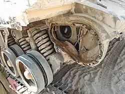 Il est à noter que les galets de roulement du Merkava Mk. 3 Baz sont dépourvus de bandages caoutchoutés revêtant traditionnellement les galets de roulement (réduisant entre autres les vibrations), le terrain rocailleux du Golan s'avérant très destructeur pour ce genre de revêtement, l'armée israélienne a tout simplement décidé de les supprimer[6]. Le Mk. 3 emploie un nouveau jeu de chenilles qui sont plus larges que les précédentes utilisées sur les Merkava Mk. 1 et Mk. 2, l'espacement entre les galets de roulement a également été revu afin de mieux répartir le poids du char sur la chenille[1].