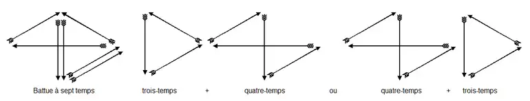 Une variante plus complexe de la mesure à sept temps est la mesure à « trois temps et demi » (par exemple, ![]()