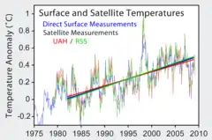 - (en) Cet article est partiellement ou en totalité issu de l’article de Wikipédia en anglais intitulé « Satellite temperature measurements » (voir la liste des auteurs).