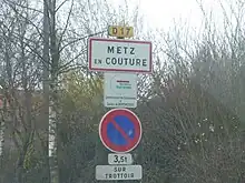 Les formes anciennes ne ramènent pas la mansio latine (maison, demeure[17]), encore moins aux médiomatrices (de Metz en Lorraine). D'après Maurits Gysseling, Metz-en-Couture serait la « Maginaswinþis cultūra », la couture (terre cultivée) de Maginaswinþis[18], nom d'homme germanique composé de magina (force, puissance, qui a donné Macht, pouvoir, en allemand ou en néerlandais) et swinþa (robuste, vigoureux, qui a donné Geschwindigkeit, vitesse, en allemand).