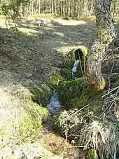 - Beaucoup plus modestes, ces aquifères surplombant sans se mélanger à la principale nappe peuvent être aussi exploités comme source aqueuse, ainsi le captage en amont du hameau de Grattain. Provenant des grès rouges, l'eau est souvent ferrugineuse. L'eau dans les deux cas est bien référencé par les services spécialisés : connaissance de la température, résistivité, radioactivité, dureté, pH….
