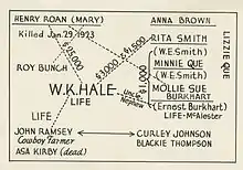 Le , Henry Roan, autre cousin d'Anna Brown (également connu sous le nom de Henry Roan Horse), a été retrouvé dans sa voiture sur la réserve d'Osage, mort d'une balle dans la tête. Roan avait également un lien financier avec William Hale, lui ayant emprunté 1 200 $. Hale s'est arrangé pour devenir frauduleusement le bénéficiaire de la police d'assurance-vie de 25 000 $ de Roan[14]. Un mois plus tard, le , une bombe a détruit la résidence de Fairfax de la sœur d'Anna Brown, Rita Smith, la tuant avec sa domestique, Nettie Brookshire. Le mari de Rita, Bill Smith, a été grièvement blessé par l'explosion et est décédé quatre jours plus tard. Peu de temps avant, Bill a fait une déclaration impliquant ses meurtriers présumés et a nommé la succession de son épouse. Des enquêtes ultérieures ont révélé que la bombe contenait 19 litres de nitroglycérine.