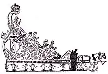 - Sur le char, on lit, en zoomant sur la photo l'inscription : « A LA REINE DES CORSES »