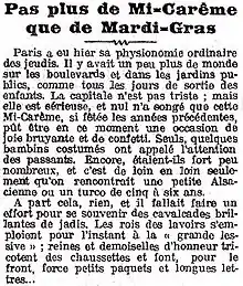 - La Mi-Carême, Le Petit Parisien, 17 mars 1898, page 1, 4e colonne.