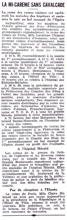 - Les fêtes de la Mi-Carême, Le Petit Parisien, 28 mars 1930, page 3, 5e colonne.