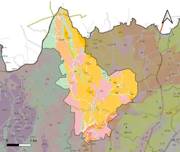 La superficie cadastrale de la commune publiée par l'Insee, qui sert de référence dans toutes les statistiques, est de 37,30 km2[11],[Note 2]. La superficie géographique, issue de la BD Topo, composante du Référentiel à grande échelle produit par l'IGN, est quant à elle de 38,36 km2[3].