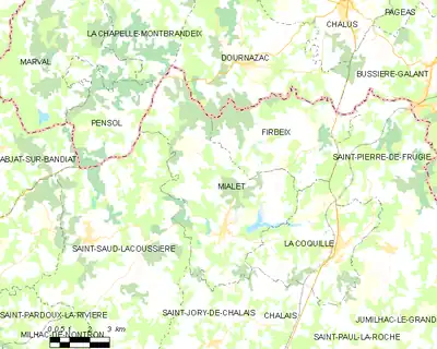 - « Orthodromie entre Mialet et La Coquille », sur fr.distance.to (consulté le ).