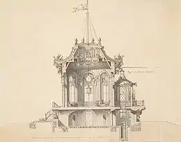 En 1768, le marquis de Marigny qui, quatre ans auparavant, avait hérité de sa sœur le domaine de Ménars, lui demanda confidentiellement – parallèlement à plusieurs de ses collègues parmi lesquels Charles De Wailly et Nicolas Marie Potain – des dessins pour un belvédère chinois pour le lieu-dit Rond-de-Cour dans les jardins du château de Menars[10].