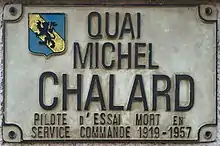 Croix de guerre 1939-1945 avec 2 palmes et 3 étoiles- Une voie de La Boisse se nomme « quai Michel-Chalard »[4]. Anciennement « quai de la Sereine », la voie est rebaptisée le en présence de Jacqueline Auriol et André Turcat[5].
