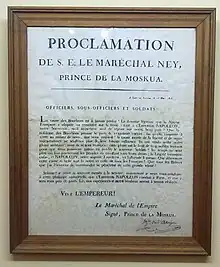 Michel Ney, duc d’Elchingen, prince de la Moskowa, maréchal d'Empire, né le à Sarrelouis en Lorraine[Note 1] est un général français de la Révolution, élevé à la dignité de maréchal d'Empire en 1804 et fusillé le , place de l’Observatoire à Paris.
