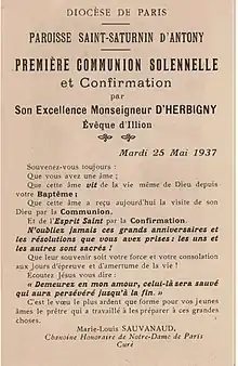 - Michel d'Herbigny, né le à Lille (France) et mort le à Aix-en-Provence, Bouches-du-Rhône (France)[3], est un jésuite français, théologien orientaliste et évêque catholique clandestin en Russie Soviétique. Durant une dizaine d'années (1922-1932), il fut l'envoyé clandestin du pape Pie XI en URSS, chargé par ce dernier d'y rétablir une hiérarchie catholique qui avait été éliminée par la dictature bolchevique.