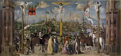 - Crucifixion (1500) env., toile, 335 × 720 cm, Pinacothèque de Brera, Milan.