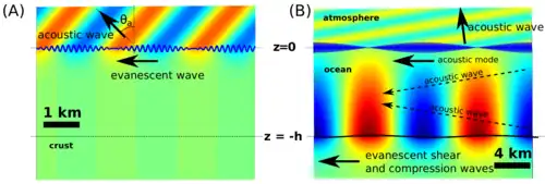 - Arendt, S. et Fritts, D.C., « Acoustic radiation by ocean surface waves », Journal of Fluid Mechanics, vol. 415, no 1, , p. 1–21 (DOI 10.1017/S0022112000008636, Bibcode 2000JFM...415....1A) :