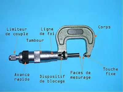 Le micromètre, ou anciennement « palmer », est un instrument de mesure de longueur. Sous sa forme courante, il est très utilisé en mécanique pour mesurer épaisseurs, diamètres de cylindres (micromètre d'extérieur) ou diamètres d'alésage (micromètre d'intérieur)…