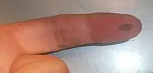 Les feuilles sont petites et plates (8 millimètres de long pour 6 millimètres de large[3]), ovales ou lancéolées (en forme de fer de lance)[4], sessiles ou peu pétiolées, nervomarginalisées[Trad 1], étroitement imbriquées[3] et souvent teintées de rouge[6] par les anthocyanes, en particulier lorsqu'elles sont fortement exposées au soleil, ces pigments ayant un rôle photoprotecteur : en absorbant les UV, ils réduisent la photoinhibition[7] et la photo-oxydation, agissant en bouclier pour l'ADN et les composants cellulaires[8]. Les feuilles sont légèrement tomenteuses sur la face inférieure, glabres et d'un vert brillant sur la face supérieure[3].