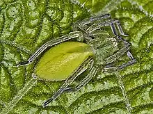 Cette espèce ne tisse pas de toile et chasse les insectes dans la végétation où son camouflage est parfait.