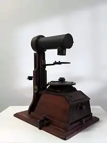 Appareil pour la projection de microphotographies utilisé par Eugène Trutat pour des conférences (Photothèque du muséum de Toulouse).