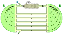 Dans un microtron de type circuit, deux aimants en forme de D sont situés à chaque extrémité de l'appareil pour fournir une plus grande souplesse et atteindre ainsi une plus grande efficacité lors de la phase d'injection des électrons et un gain d'énergie plus élevé par orbite grâce à l'utilisation de structures accélératrices au moyen de cavités multiples semblables à celles utilisées dans les accélérateurs linéaires. Le trajet décrit par les particules sont ainsi constituées de deux tronçons semi-circulaires et deux tronçons rectilignes[4].