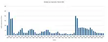 - – l'URSS : 813 708 arrivées dont près de 73 % entre 1990 et 1995 (soit près de 600 000 soviétiques déplacés)[5] ;