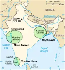 Localisation des communautés juives en Inde avant leur émigration en Israël.