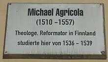 Mikael Agricola (né vers 1510 à Pernaja – mort le à Uusikirkko) est un pasteur finlandais qui devient évêque. Linguiste, théologien, humaniste, il est également un érudit dans de nombreux domaines telles les sciences de la nature, le droit et la médecine. Réformateur dans la province suédoise de Finlande, il souligne l'importance de la Bible. Écrivain et traducteur, il est l'auteur de la version finnoise du Nouveau Testament[1],[2].