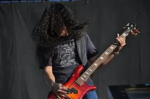Mike Inez joue principalement sur des basses du luthier allemand Warwick.