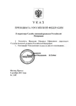 - (ru) Russie. « Указ Президента Российской Федерации от 25.07.2000 года №1359 "О присвоении квалификационных разрядов федеральным государственным служащим Администрации Президента Российской Федерации" » [lire en ligne (page consultée le 30 avril 2023)]