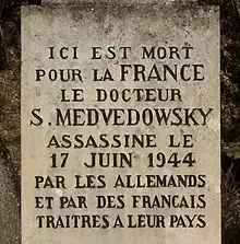 Sont aussi exécutés des hommes politiques hostiles à la Collaboration. Dès , le directeur de La Dépêche de Toulouse Maurice Sarraut est exécuté par des miliciens[15] envoyés par les Allemands ainsi que l'ancien ministre du Front populaire Jean Zay ou l'ex-ministre de l'Intérieur Georges Mandel livré par les Allemands à la Milice et exécuté dans la forêt de Fontainebleau en . De même, le député Victor Basch (81 ans), président de la Ligue des Droits de l’Homme (LDH), et sa femme Hélène, dont les exécutions sont dirigées par Paul Touvier[16] du 2e service de la Milice (dont le chef est Jean Degans) venu sur place.