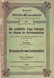 - Erst 1904 wurde mit den Vierteljahrshefte für Truppenführung und Heereskunde (de) wieder eine amtliche militärische Zeitschrift herausgegeben.