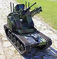 En 2009, l'Institut technique militaire a présenté son premier UGV de combat, Milica[2]. Le développement continu a conduit à un nouvel UGV, nommé Miloš. Le Miloš a une meilleure autonomie et une station de contrôle à distance plus petite qui est portée et actionnée par un seul soldat[3]. L'UGV tient dans une petite remorque et peut être transporté par des véhicules militaires 4x4 plus petits ou en nombre sur des véhicules plus gros jusqu'à la zone de déploiement. Pour la surveillance et la détection, il utilise une caméra thermique, une caméra jour et nuit et un télémètre laser. Il a une ou deux armes attachées sur sa tourelle. Le poids total maximum est d'environ 700 kg ou 300 kg de fret. Deux caméras jour/nuit sont installées à l'avant et à l'arrière pour la conduite. Il peut reconnaître la soudure à l'aide d'un dispositif à couplage de charge jusqu'à 1 000 m et possède une caméra thermique qui permet la reconnaissance jusqu'à 450 m. L'équipement comprend un télémètre laser pour une portée allant jusqu'à 2 000 m[4].