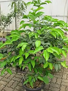 C'est un arbre à feuilles persistantes, atteignant 30 m de haut mais pouvant aller jusqu'à 60 m avec un tronc de 1 m de diamètre. L'écorce épaisse est brunâtre ou gris foncé avec quelques stries et fissures à sa surface. Il fleurit en avril et a ses fruits comestibles en juin. Les feuilles sont brillantes, vert foncé, de forme ovale, de 5 à 14 cm de long et 2,5 à 6 cm de large. Les fleurs sont crème, velues et parfumées. Le fruit, une baie ovoïde d'abord velue, devient lisse et orange à maturité et mesure 2 à 3 cm de long. Il contient une ou deux graines.
