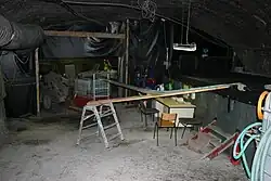 Espace d'amenée, 20 m au-dessus de l'espace 8a. Les colis de déchets de moyenne activité tombent par le couloir incliné vers l'espace 8a.