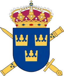 Le ministère de la Défense possède ses propres armoiries : elles reprennent les petites armoiries de la Suède, surmontant une épée et un bâton de maréchal croisés.