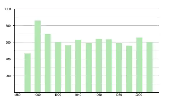 | 1950 | 592 | ▼ −6,03 % | |