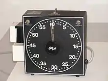 Une minuterie d'agrandisseur, ou compte-pose de chambre noire,[1] est un appareil utilisé en photographie pour chronométrer les processus d'agrandissement des négatifs sur papier, pour les fabriquer à n'importe quelle échelle. C'est un appareil sur lequel est branchée l'agrandisseur du labo photo pour assurer que la durée des poses photo sur papier sensible puisse être réalisée avec précision.