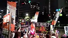 - (en-US) Tomohiro Osaki, « Thousands rally to protest LDP lawmaker Mio Sugita’s remark calling LGBT people ‘unproductive’ », The Japan Times Online, (lire en ligne, consulté le ).