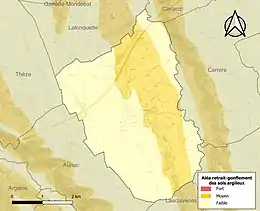 Le retrait-gonflement des sols argileux est susceptible d'engendrer des dommages importants aux bâtiments en cas d’alternance de périodes de sécheresse et de pluie[28]. 36,4 % de la superficie communale est en aléa moyen ou fort (59 % au niveau départemental et 48,5 % au niveau national)[Carte 3]. Depuis le , en application de la loi ELAN, différentes contraintes s'imposent aux vendeurs, maîtres d'ouvrages ou constructeurs de biens situés dans une zone classée en aléa moyen ou fort[Note 5],[29].
