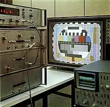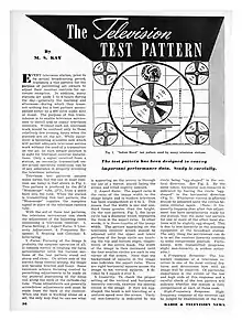 Au début des années 1950, le dispositif du monoscope commence à être exploité : un tube cathodique, capteur de caméra vidéo sur lequel a été imprimé ou « brûlé » électroniquement une image fixe, génère un signal vidéo composite en noir et blanc permanent, stable et étalonné.