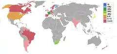 | Disparitions | Miss Bolivie, Miss Ceylan, Miss Liban, Miss Madagascar, Miss Nicaragua, Miss Rhodésie et Nyassaland, Miss Suriname, Miss Turquie | |||||||