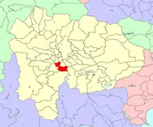 Entités territoriales limitrophes à la date de la fusion du [3]. À sa fondation en 1954, Mitama est entouré à partir du nord, dans le sens horaire, des villages de Tatomi (田富村) et Sanchō (ja) (三町村), par un quadripoint, tous deux du district de Nakakoma, des villages de Toyotomi (豊富村) et d'Ubaguchi (ja) (右左口村), tous deux du district de Higashiyatsushiro, des villages de Kamikuishiki (ja) (上九一色村), Furuseki (ja) (古関村), Yamaho (ja) (山保村) et du bourg d'Ichikawadaimon (市川大門町), tous quatre du même district de Nishiyatsushiro[3]. Elle enclavait aussi une portion d'Ichikawadaimon[3].