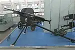 Hotchkiss modèle 1914 avec bande de cartouches, trépied et flèche arrière extensible sur laquelle coulisse un siège pour le tireur
