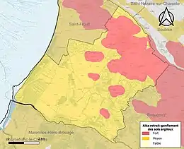 Le retrait-gonflement des sols argileux est susceptible d'engendrer des dommages importants aux bâtiments en cas d’alternance de périodes de sécheresse et de pluie. La totalité de la commune est en aléa moyen ou fort (54,2 % au niveau départemental et 48,5 % au niveau national). Sur les 275 bâtiments dénombrés sur la commune en 2019, 275 sont en aléa moyen ou fort, soit 100 %, à comparer aux 57 % au niveau départemental et 54 % au niveau national. Une cartographie de l'exposition du territoire national au retrait gonflement des sols argileux est disponible sur le site du BRGM[22],[Carte 2].