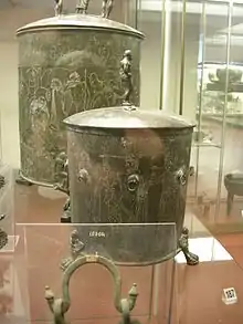 - Le coffre à effets personnels : Cista Ficoroni cylindrique, en bronze (conservé à Rome).