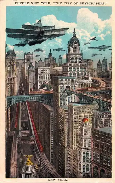 Depuis la démonstration de la possibilité de créer des aérostats capable de transporter des humains ou marchandises, puis depuis 1909 (année de grands spectacles grand public basés sur le vol dirigé, un imaginaire futuriste - dit de la ville aérienne par l'architecte-urbaniste Nathalie Roseau - s'est développé, largement repris par la science fiction et par des urbanistes (dès la fin du XIXe siècle)[10]. Depuis lors, selon N. Roseau, « l’urbanisme et la mobilité aérienne se sont mutuellement nourris" et les dispositifs de ville aérienne ou d’aéroport-ville ont fonctionné comme un miroir pour la ville en devenir »[11]. Une série d'accidents de dirigeables (et en particulier l'explosion, le 6 mai 19374, du Zeppelin LZ 129 Hindenburg après 14 mois de service actif sur une ligne transatlantique régulière), le volume occupé par ces engins, leur vulnérabilité aux tempêtes et le cout de l'hélium semblent avoir eu raison de ce mode de transport, qui conserve cependant des défenseurs et quelques engins.