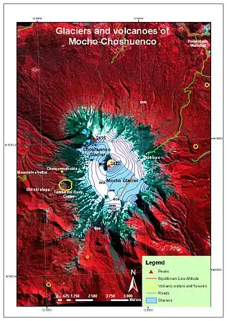 Image satellite en fausses couleurs légendée du Mocho-Choshuenco.