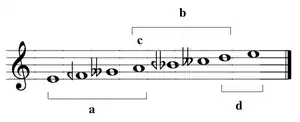 sol la si do ré)[1] - mode mixolydien de mi (relatif au ton de la majeur – mi fa