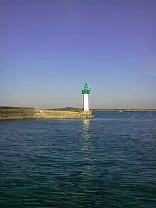 Un phare similaire de couleur rouge se trouve sur la jetée du vieux port de Menton[26].